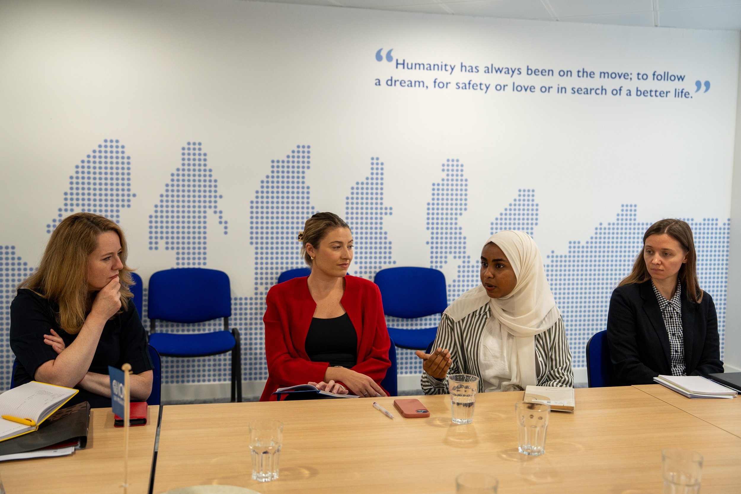 Pictured: Asma in conversation with the International Organization for Migration’s (IOM) Director General Amy Pope, in IOM’s London office. Photo credit: [IOM UK]